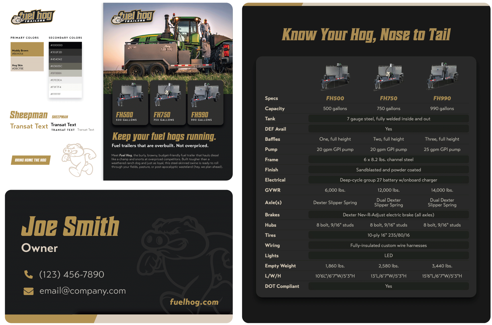 Fuel Hog trailers are ready to work as hard as the farmers who depend on them. What Fuel Hog needed was a brand to match the trailers' tough and practical attitude. Lead built Fuel Hog's brand from the hooves up using the existing hog character as inspiration.