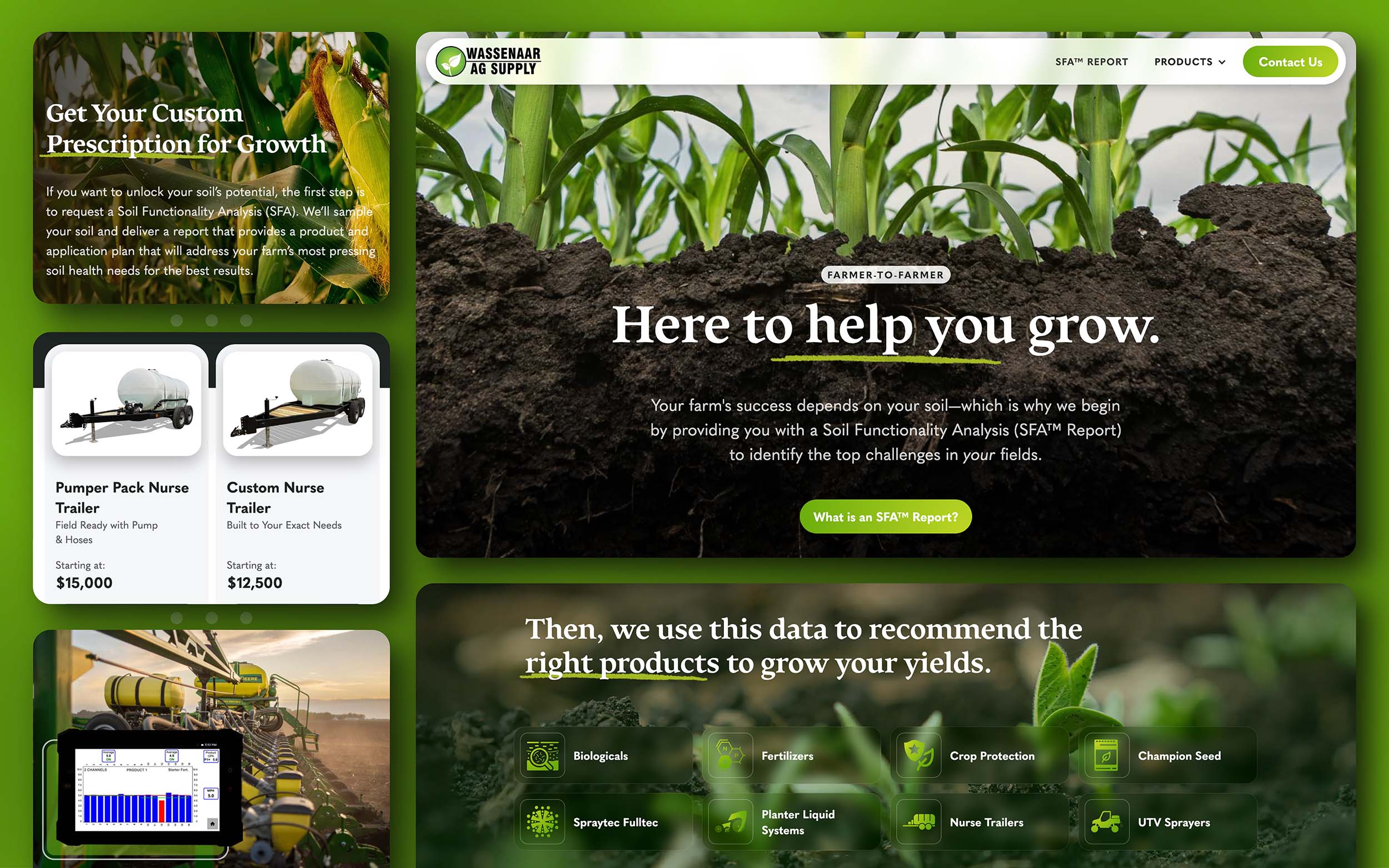 Wassenaar Ag's simple 1-page website has continued to grow over the years along with Dustin's business. Dustin remarked to us that his website has earned him credibility with potential customers, making sales calls easier and more productive.